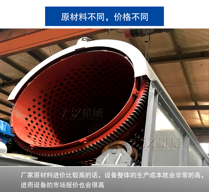 原材料價(jià)格的高低對設(shè)備價(jià)格的影響也是很大的,如果一個(gè)廠家原材料進(jìn)價(jià)比較高的話,設(shè)備整體的生產(chǎn)成本就會(huì)非常的高,進(jìn)而設(shè)備的市場報(bào)價(jià)也會(huì)很高;相反,如果原材料進(jìn)價(jià)比較低的話,設(shè)備的生產(chǎn)成本就低,無軸滾筒篩價(jià)格也就定的很低。