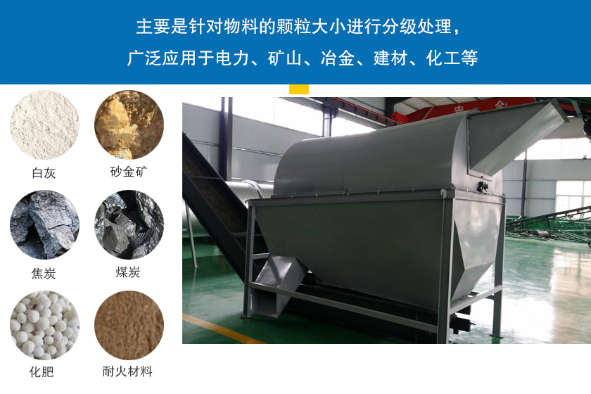大型滾筒篩主要是針對物料的顆粒大小進行分級處理,廣泛應用于電力、礦山、冶金、建材、化工等行業(yè),常用于耐火材料、煤炭、化肥、砂場石塊的分級,還可以處理焦炭、白灰、砂金礦等粘濕性物料。