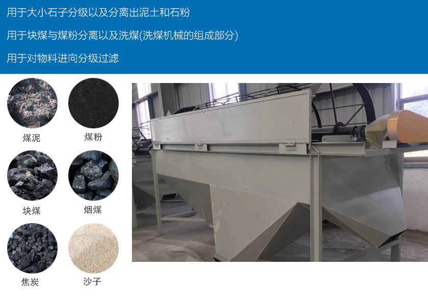 煤炭行業:用于塊煤與煤粉分離以及洗煤(洗煤機械的組成部分)。