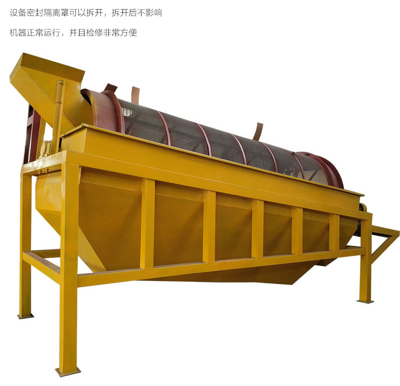 5、滾筒支承采用整體通軸結構,回轉篩速度小,運行平穩,并且有密封隔離罩與外界隔離,使噪音無法傳遞到外部,降低工作噪音。