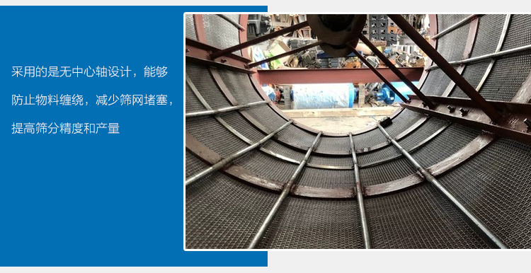 2、采用滾筒篩分,其原理類似于攪拌機,物料在篩分過程中通過不同的翻滾,可以減少物料的堵塞。